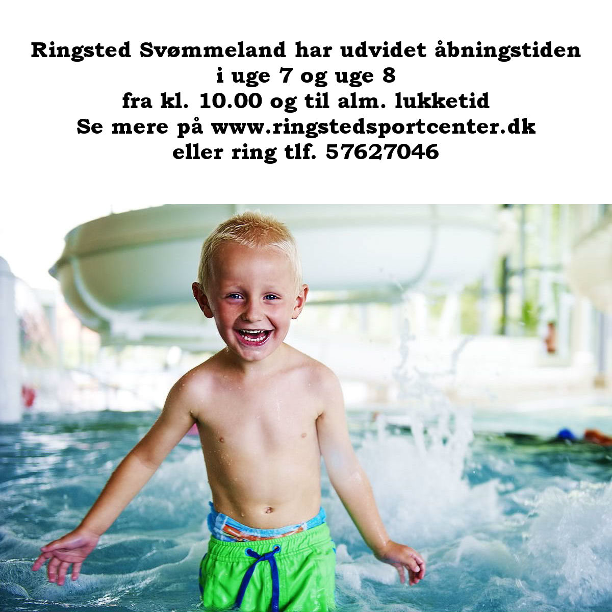 Ringsted Svømmeland har Udvidet Åbningstid i uge 7 og i uge 8 (fra klokken 10.00 til almindelig lukketid). Se evt. også HER